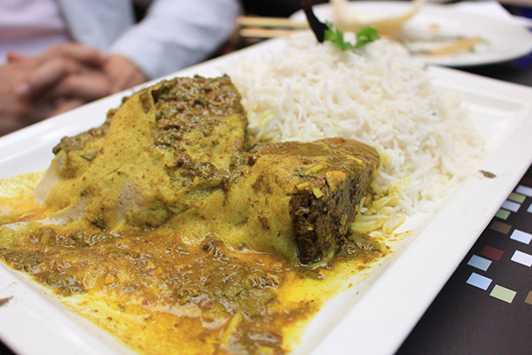 これはMachbousとメニューにありましたが読めません。付け合せはライスではなく短いパスタのようでした。